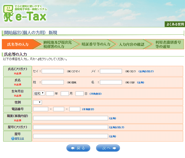 開始届出書は書面でも提出できますが、インターネットで提出すればすぐに利用者識別番号を取得することができます。必要な時間は10分程度です。