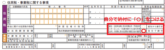 確定申告で追加の住民税を自身で支払うという方法を選択する際は、次のように確定申告書に記載します。