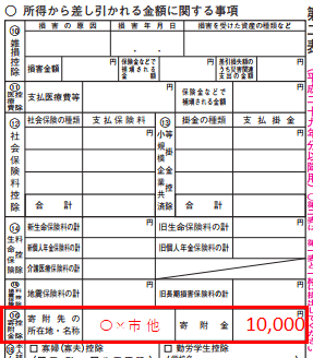 複数欄がありますが、ふるさと納税は「都道府県、市区町村分」に該当します。