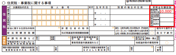 ・住民税・事業税に関する事項の寄附金税額控除欄に寄付した金額を記入します。