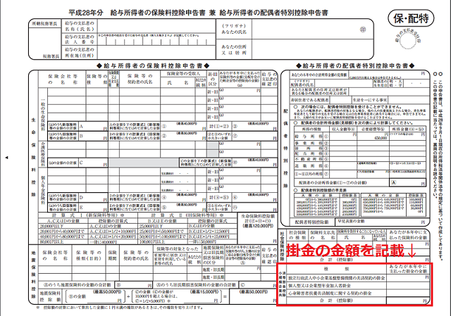 年末調整の際に「給与所得者の保険料控除申告書兼給与所得者の配偶者特別控除申告書」に必要事項を記入し、証明書を添付して会社に提出すれば、完結します。