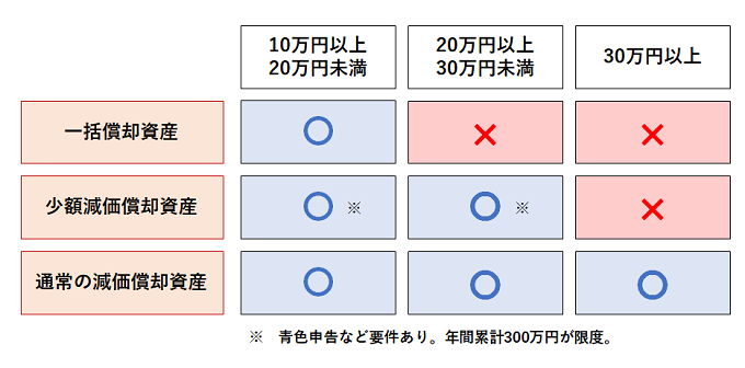 なお、一括償却資産や少額減価償却資産にすることができる資産について通常の減価償却を選択することは可能です。